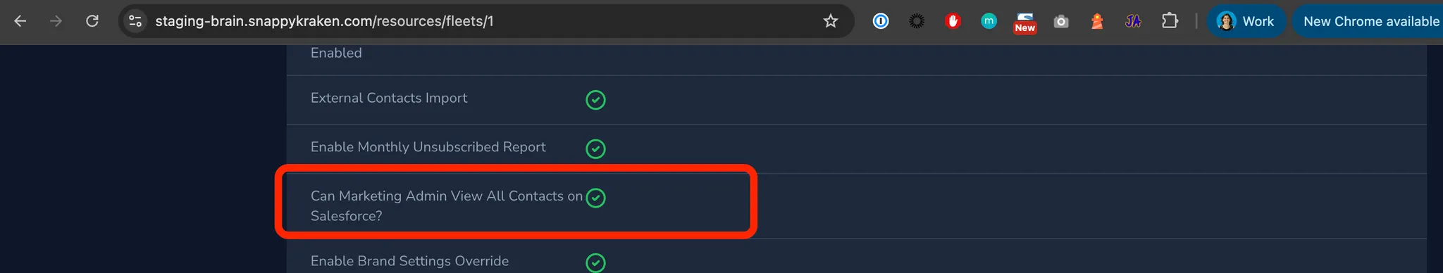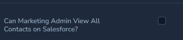 - On the fleet settings, enable "Can Marketing Admin view all contacts on Salesforce" by clicking on the checkbox.