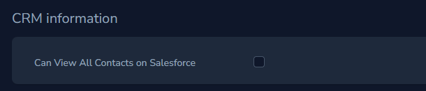 - Scroll down to the CRM information section and check the "Can View All Contacts on Salesforce for that individual Marketing Admin user" option to enable the feature.