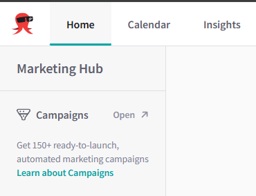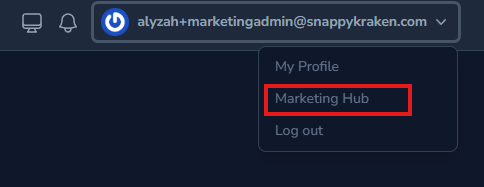 - Click the user account name at the top right corner and select Marketing Hub.